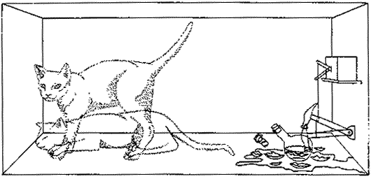 ஐம்பதுக்கு ஐம்பது என்ற விகிதத்தில் வாய்ப்பு இருப்பதால் பூனை இறந்தது என்று சொல்லவும் சொல்லலாம்; அது இறக்கவில்லை என்றும் சொல்லலாம்.