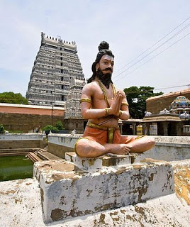 One of the 18 Tamil Siddhas is Tirumular. He wrote Tirumanthiram which is part of Saivite literature. Periya Puranam gives his life history in detail. He was initiated by great Nandi in Mount Kailash. He came down to the south to meet Agastya. On his way to Podigai hills from Tiru Avaduthurai, he saw a flock of cows grieving over the death of their herdsman. His name was Mulan and he hailed from nearby village Sattanur. Pitying the cows he used the power of Para Kaya Pravesa (entering in to another body) he entered in to Mulan’s body. But his behaviour was strange. When Mulan’s wife touched him, he got a shock and sat under a tree in meditation. After some time he came in search of his original body which he hid in the hollow of a tree trunk. When he couldn’t find it, he remained Tiru Mular and composed 3000 Tamil verses. This is the second parakaya pravesa story. Tiru Mular was said to have lived 3000 years, but his language and style places him in eighth century AD.