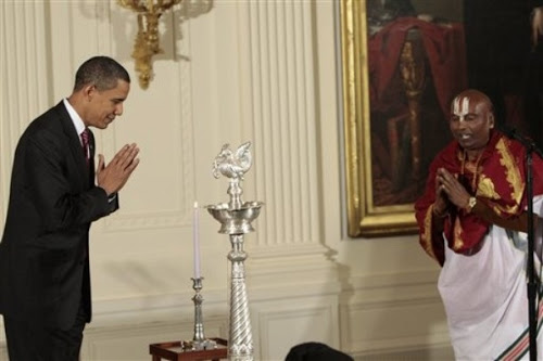 Picture of President Obama with Hindu Priest at White House in 2009.