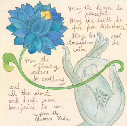 சுவர்க்கம் எங்களுக்கு சாந்தி அளிக்கட்டும்’ பூமியும் ஆகாசமும், தண்ணீரும், தாவர மூலிகைகளும் சாந்தி தருக. ருத்திரர்கள், வசுக்கள், ஆதித்தியர்கள், அக்னிகள், மகரிஷிகள், தேவர்கள், பிரகஸ்பதி சாந்தமானவர்களாக இருப்பதும் இருக்கப்போவதும் சாந்தம்; எங்களுக்கு எல்லாம் சாந்தி தருவதாக.