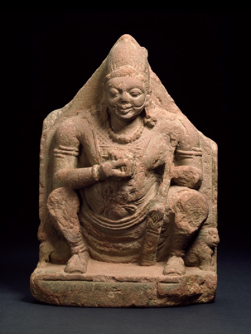 The idol of Multan is reported to have resembled a man, seated on a chair. Its body was covered with red skin in such a manner that nothing of it could be seen, excepting the eyes which are reported to have been two gems of great value. The jewels were fixed in the sockets with such a great skill that they looked real. Ibn Nadim reports that these gems were bigger than eggs of the sparrow and shone with brilliance in the temple. A crown of gold also adored the head of the idol, whose hands were placed on knees and the fingers of one of his hands show as if he was counting four. (My comments: It must be Chin Mudra of Hindu Gods: swami).