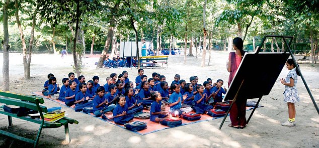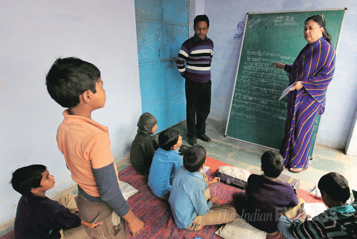Rajasthan Chief Minister Vasundhara Raje in a village school.