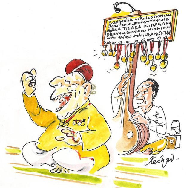 Now Khumba left Sikidwaja on the pretext of visiting Indraloka. When he came back he had a sad face. Sikidwaja asked the reason for his sadness. Since he cracked a joke at Durvasa on his way back, he cursed him to become a woman during night and that made him sad. Sikidwaja told him that he wouldn’t mind even if he became woman during night time. The night came and he went behind a curtain and started describing all the changes in his body. Khumba said to him that now his name was Madanika. She came out like a beautiful woman. As the night advanced she came closer to Sikidwaja and said to him, “Let us spend the night as husband and wife”. She found that the king, though responsive, remained untouched by any experience. He took no initiative at any stage although he never denied her anything when she made a demand on him as a wife. Chudala (Khumba/Madanika) felt very happy that her husband had come through the first test successfully.