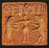 Some cylinder seals of the Akkadian period and an impression from one of the middle Assyrian period show a pastoral scene with a man riding on the back of a large flying bird, thought relate in some way to the legend of Etana, though the Akkadian seals are two to three hundred years earlier than the oldest texts of the story known.
