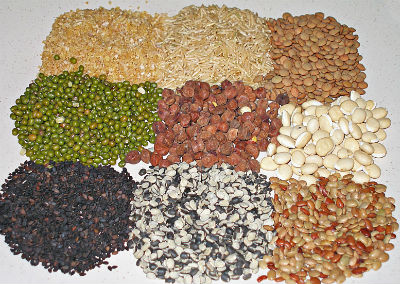 நெல், கோதுமை, துவரை, பாசிப்பயறு, எள், வெள்ளை மொச்சை, கொள்ளு, உளுந்து, கொத்துக் கடலை