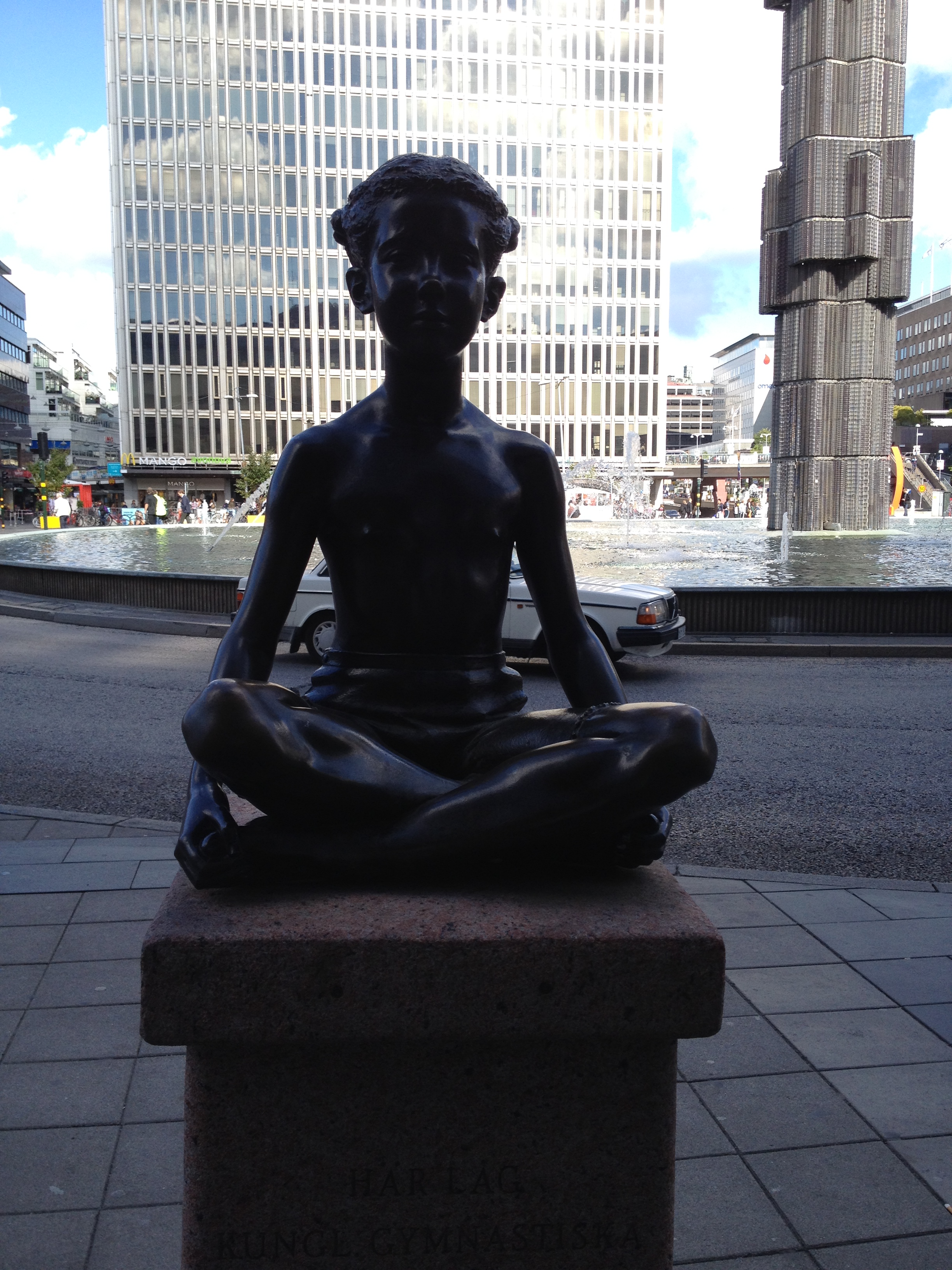During my recent trip to Stockholm, I saw pictures sitting in Padmasana in T. Centralen and women are portrayed in The City Hall as we have sculpted them in our temples. But these are very of very recent origin. I noticed a statue in the Royal place looking like Lord Krishna. Probably it is a royal baby statue.