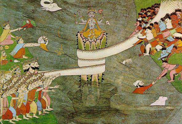 தேவர்களும் அசுரர்களும் கடலைக் கடைந்தனர். பதினான்கு “ரத்தினங்கள்” கடலில் இருந்து தோன்றின என்பது பாகவதம், மஹாபாரதம் முதலிய புராண, இதிஹாசக் கதைகளில் உள்ளன. கம்போடியாவில் உள்ள அங்கோர்வட் கோவிலில் கூட இதைச் சிற்பமாக வடிக்கும் அளவுக்கும், தாய்லாந்து நாட்டின் தலைநகரமான பாங்காக் விமான நிலையத்தில் பிரம்மாண்டமான சிலை வைக்கும் அளவுக்கும் பிரபலமான கதை இது. தென்கிழக்காசியா முழுதும் இக்கதை பிரசித்தம்.