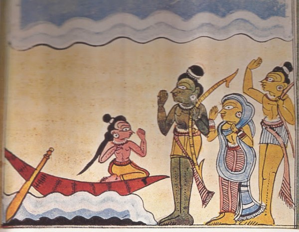 The man was walking easily on the water. Suddenly he had an intense desire to see what was tied in his cloth. He opened it and found only a leaf with the name of Rama written on it. “What is this?”, he thought. “Just the name of Rama!.” As soon as the doubt entered his mind he sank under the water.