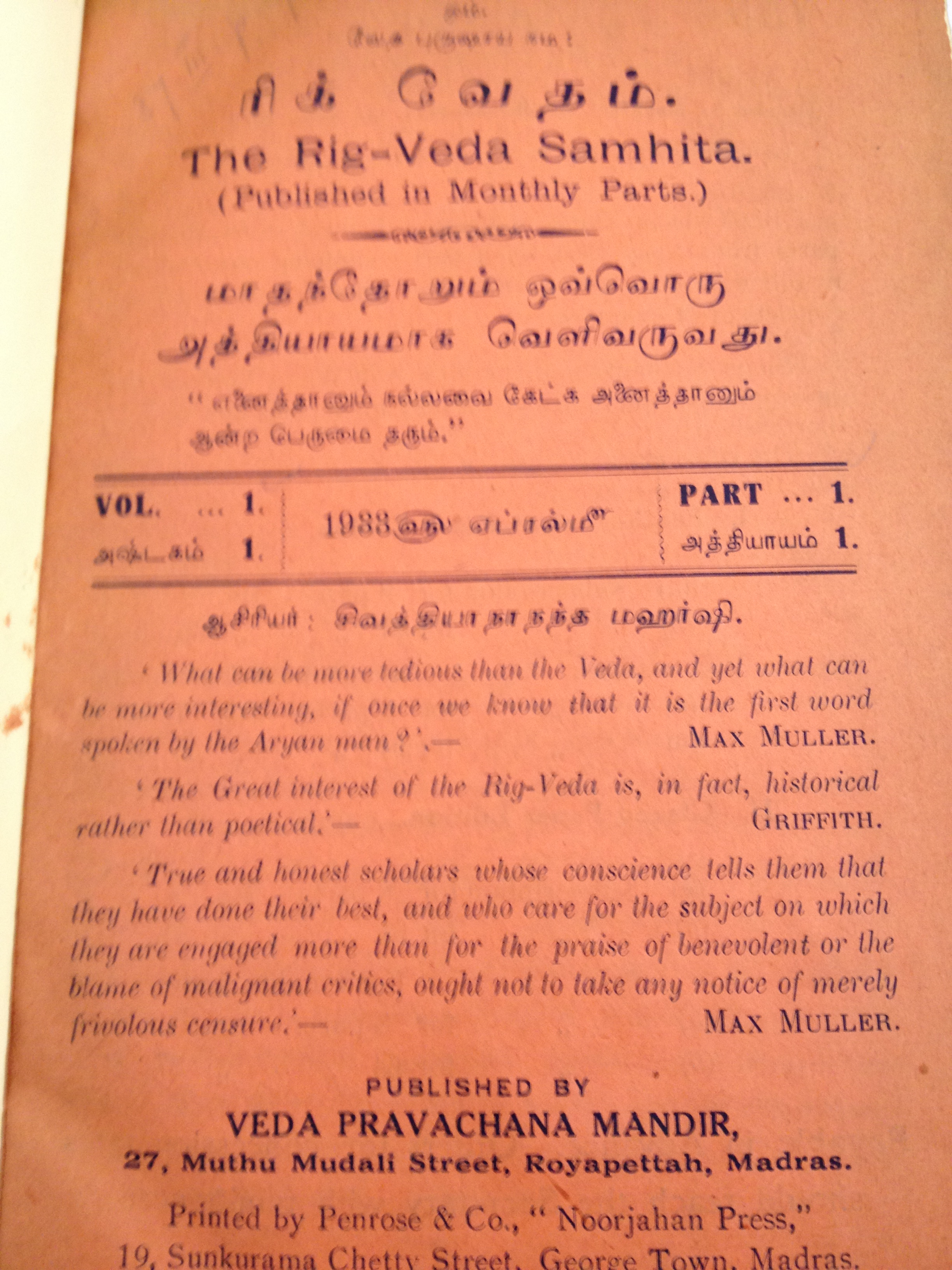 தமிழ்க் கவிதை வடிவில் ரிக் வேதம்! ஒரு அரிய நூல்!!