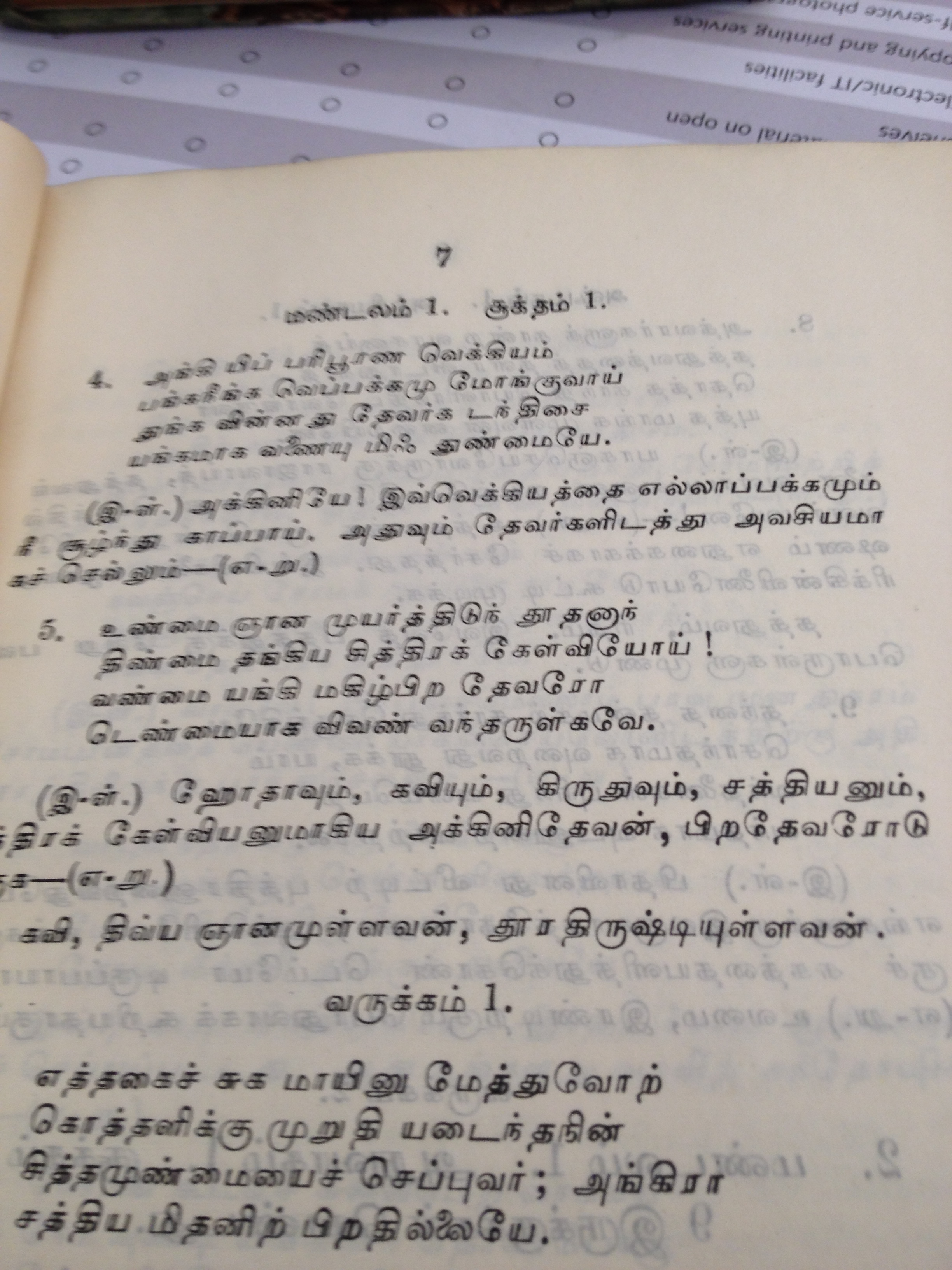 இத்துடன் மொழிபெயர்ப்பு மாதிரிகளையும் இணைத்துள்ளேன். இதைப் படித்து  அனுபவிக்க அக்னிமீளே புரோகிதம் யக்ஞஸ்ய தேவம்ருத்விஜம். ஹோதாரம் ரத்ன தாதமம்—என்று துவங்கும் ரிக்வேததை நாம் ஓரளவாவது அறிந்திருக்க வேண்டும்.