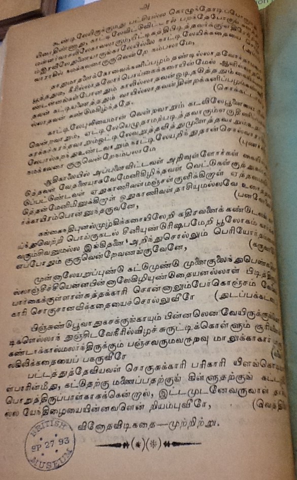இலண்டனில் பிரிட்டிஷ் நூலகத்திலுள்ள சிறிய புத்தகங்களை அப்படியே புகைப்படமெடுத்து போட ஆசை. 1892-ஆம் ஆண்டு வெளியான சுந்தர முதலியாரது விடுகதைப் பாடல்கள் நன்றாக இருந்தபடியால் அட்டை உள்பட உள்ள எட்டு பக்கங்களையும் இங்கே கொடுத்துள்ளேன். இவை மொபைல் போன், ஐ பேட் காமெராவில் எடுக்கும் போது சுமாராகவே விழுகின்றன. அடுத்த முறை செல்லும்போது இதைவிட நல்ல ‘காப்பி’ கிடைத்தால் இந்த பக்கங்களை எடுத்துவிட்டு நல்ல நகலை வெளியிடுவேன். வலது பக்கமுள்ள பக்கங்கள் முழுமையாக இருக்கும். இடது புற பக்கங்களில் ஒவ்வொரு வரியிலும் கடைசியிலுள்ள எழுத்துக்கள் ஊகித்தறிய வேண்டியிருக்கும். எப்படியாகிலும் எழுத்துக்களைப் பெரிதாக்கி (ஸூம் செய்து) படிக்க வேண்டுகிறேன். உங்கள் பொறுமைக்கு நன்றி.