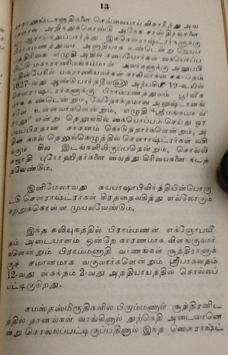 முந்தைய புத்தகத்தின் பெயர்: ஸௌராஷ்டிர ஜாதியாரின் சரித்திர சாரசங்கிரகம், ஆண்டு 1903, கும்பகோணம் ஜெ.வி.பத்துருசுவாமியினால் பிரசுரம் செய்யப்பட்டது.