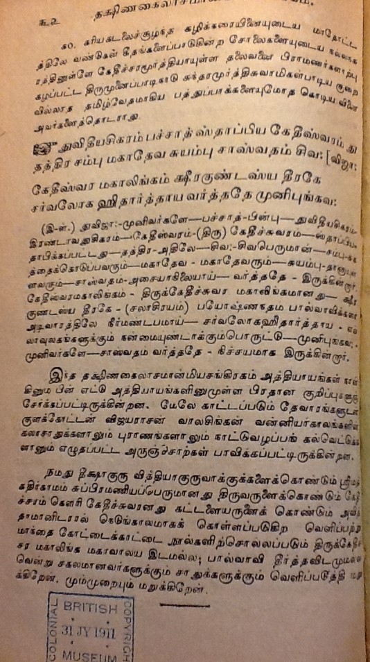 இந்த நூல் பிரிட்டிஷ் மியூசியத்தில் 1911- ஆம் ஆண்டில் சேர்க்கப்பட்டதாக கடைசி பக்கத்தில் முத்திரை இருப்பதால் அதற்கு முன்பு பதிப்பிக்கப்பட்டிருக்க வேண்டும். இப்பொழுது லண்டன் பிரிட்டிஷ் லைப்ப்ரரியில் உள்ளது.