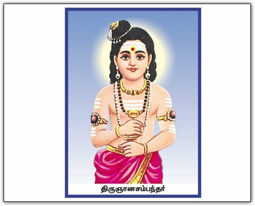 இறைவியிடம் பால் குடித்த மூன்று வயது பாலகன். தோடுடைய செவியன் என்று கண்ணாரக் கண்ட இறைவனைப் பாடத் தொடங்கினார்.