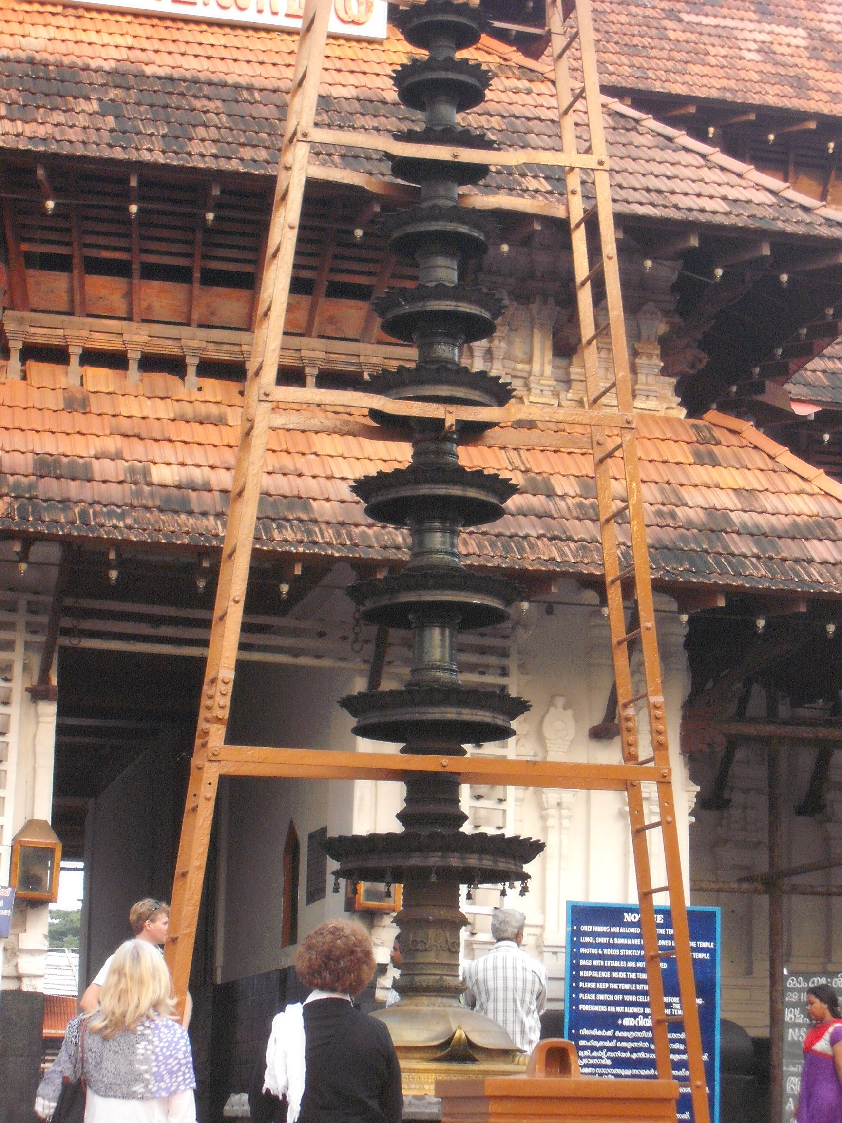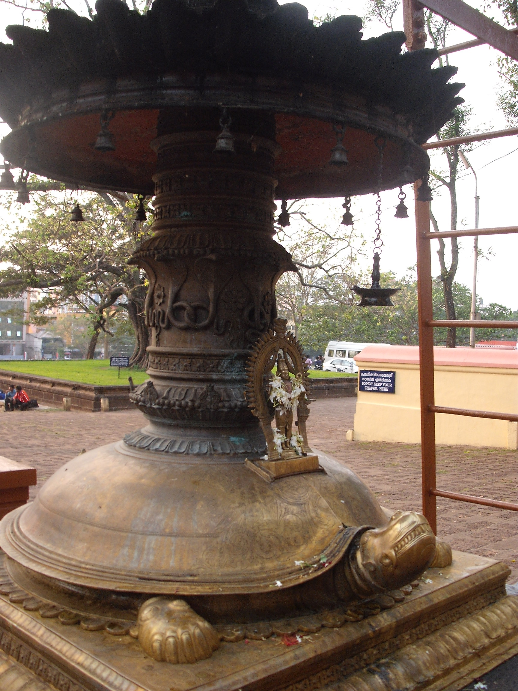 There is another mystery surrounding the Dwajasthama, the Flag Staff. In Kerala, most of the temples have erected the Dwajasthamba on Tortoise/Turtle. There is no explanation to show why Kerala temples only followed this type of Flag staff. Tortoise is associated with various things such as Kurma Avatara, Kurma Mudra, Kurma Asana etc in Hindu literature. But we have no explanation to show why they differed from other temples in the erection of Dwajasthamaba. We have Mandapas (Halls) erected on Turtle/ Tortoise in Tamil Nadu, but no Dwajasthamba.