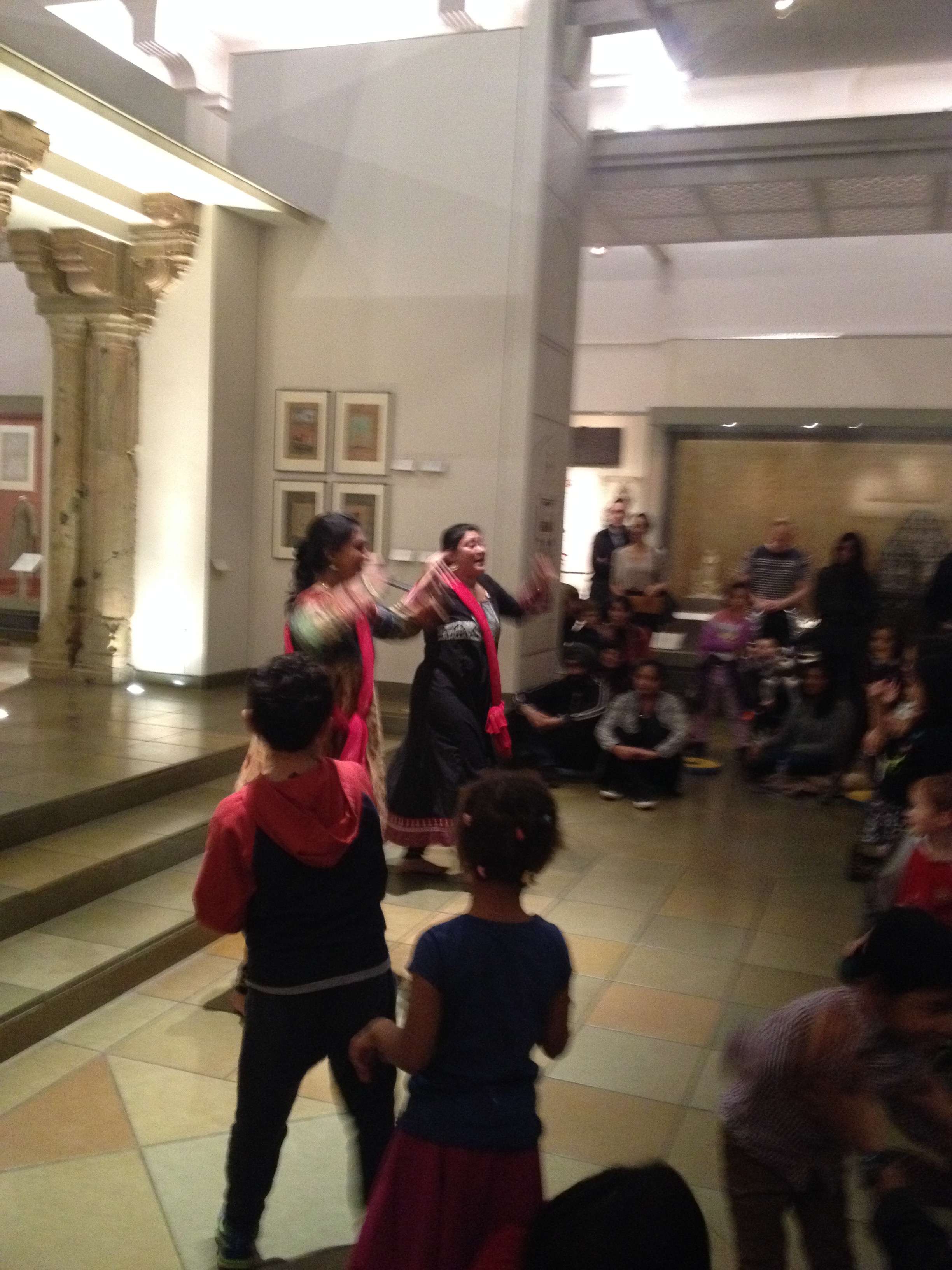V and A had arranged two days of Deepavali festival in the museum on 7th and 8th November 2015. Cultural programmes including music and dance were held. Two women from Prakruti Dance organisation in Harrow did a story telling event for children. The story was based on Ramayana. They did a bit of dance and music and made the children to participate in the drama.