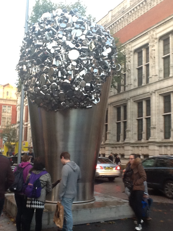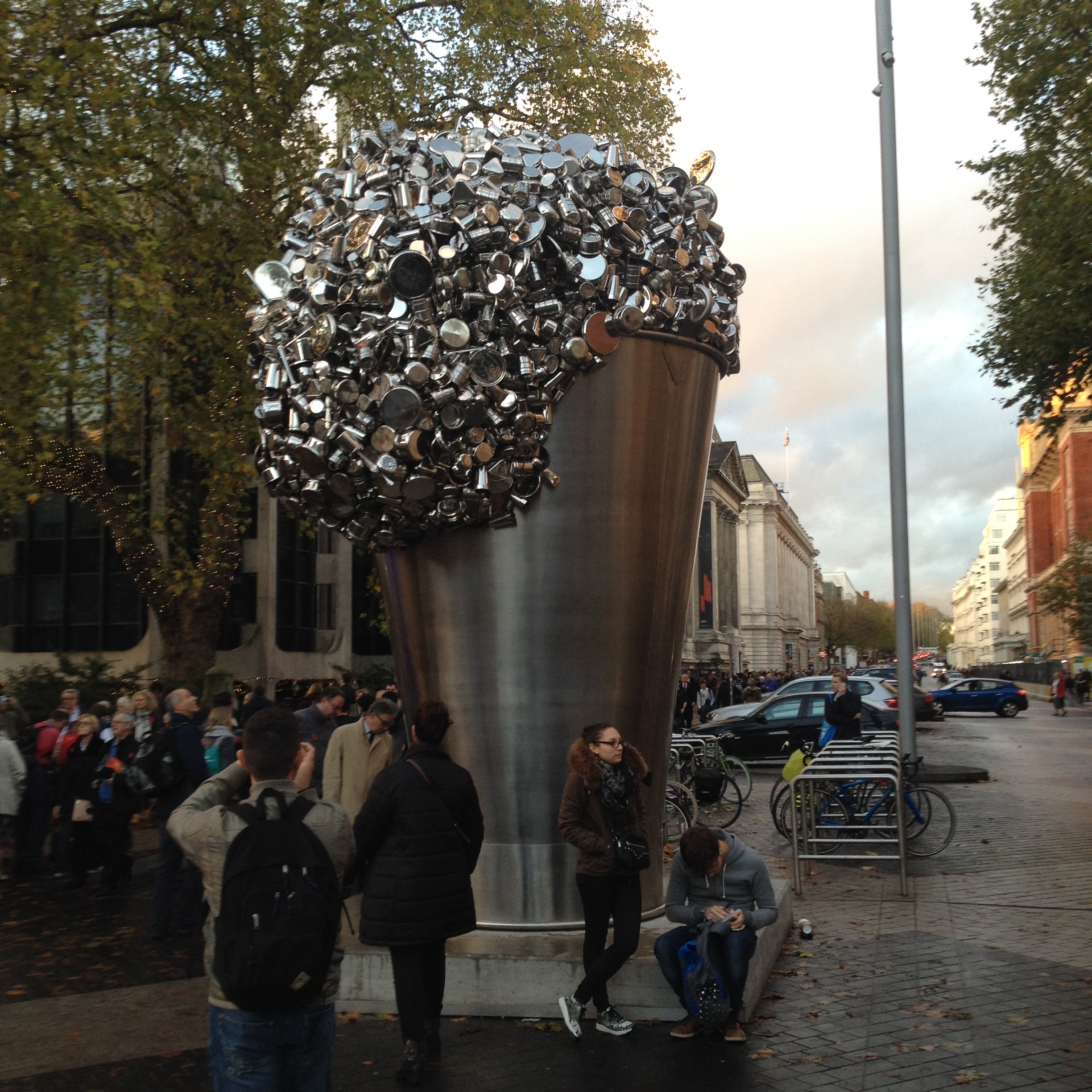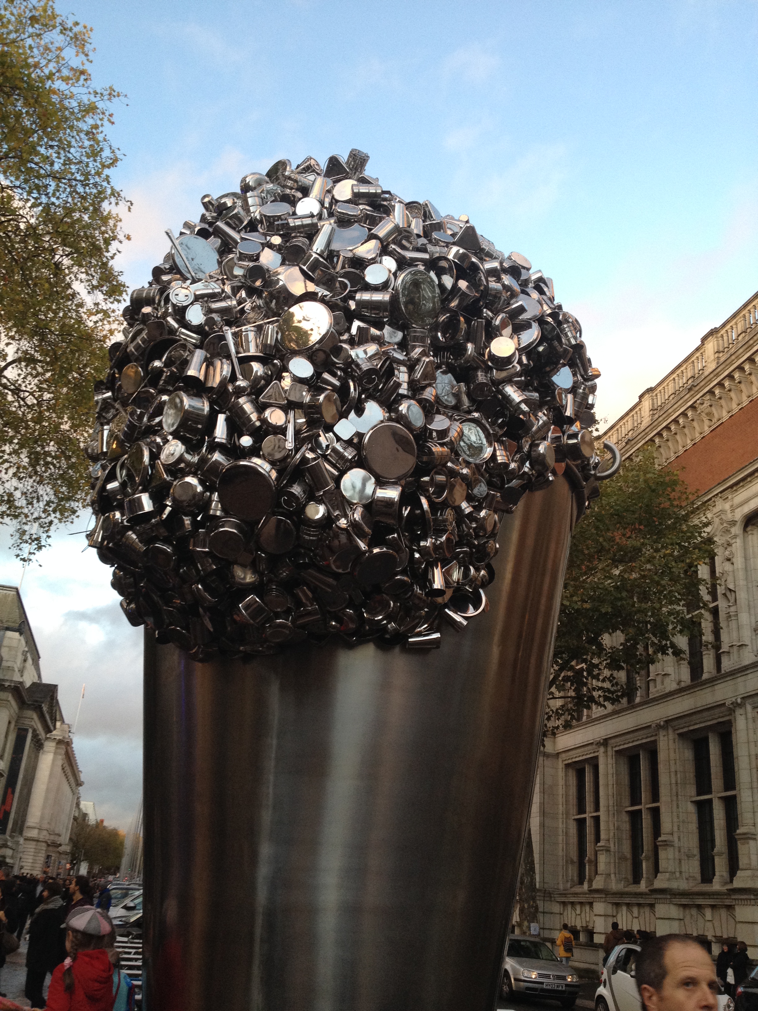 This huge bucket has become a huge attraction to the tourist crowd that frequents all the museums in South Kensington area in London.