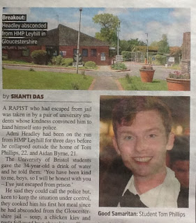 Admi Headley, 34, collapsed outside the home of University of Bristol students Tom Phillips, 22, and Aidan Byrne, 21, on November 16, three days after he absconded from HMP Leyhill in Wootton-under-Edge, Gloucestershire (United Kingdom).
