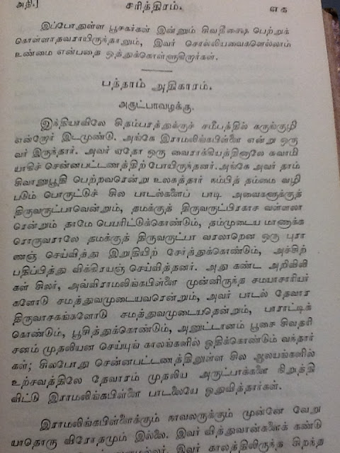 சைவ மறுமலர்ச்சியின் தந்தை ஆறுமுக நாவலர்; அவர் பணி செய்திராவிடில் இலங்கைத் தமிழர் ஏராளமானோர் கிறிஸ்தவர்களாக மதம் மாறி இருப்பர். இதே போலத் தமிழ் நாட்டில் அருட்பிரகாச ராமலிங்க அடிகள் செய்த பணி மகத்தானது. எளிய தமிழில், பாரதிக்கும் முன்னோடியாக நல்ல கவி புனைந்தவர். ஆறுமுக நாவலரும் வள்ளலாரும் பிராமணர்கள் அல்ல. இருவருக்கும் இடையேயும் வேண்டாத மோதல் ஏற்பட்டு (ஏற்படுத்தப்பட்டு) கோர்ட் வரை சென்று விட்டது. இறுதியின் ஏனோ தானோ என்று அந்த சண்டை முடிந்தது. நல்ல வேளை, இந்து மதத்துக்கு பெரிய சேதம் ஏற்படவில்லை. இருவர் புகழும் வாழ்க.
