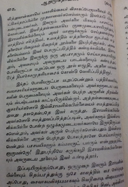 / December 15, 2016நான்கு விஷயங்களைச் சுட்டிக் காட்ட விழைகிறேன்.ந்1) இந்தக் கட்டுரையை இன்னும் முழுமையாக கூடுதல் விவரங்களுடன் தந்தால் தான் நாவலர் மற்றும் வள்ளலார் பற்றிய சரியான விவரங்களைப் புரிந்து கொள்ள முடியும்2) வள்ளலார் – நாவலர் கேஸ் நடந்த போது நாவலர், நீதிபதி இருந்த கோர்ட்டில் வள்ளலார் உள்ளே நுழைந்தார். உடனே நாவலர் உட்பட அனைவரும் எழுந்து நின்றனர். இந்த ஒரே காரணத்தினால் இவ்வளவு மரியாதைக்குரிய – கேஸ் போட்டவரே எழுந்து நிற்கும் மரியாதை – ஒருவர் தவறு செய்திருக்க மாட்டார் என்ற முடிவுக்கு வந்தார். வள்ளலார் மீதான வழக்கு தள்ளுப்டி செய்யப்பட்ட்து.3) வள்ளலார் உலகம் கண்டிராத மஹா பெரிய மஹான். அவரை இன்றும் கூட தமிழர்கள் அறிந்து கொள்ள முடியவில்லை. சரியாகப் போற்றவில்லை. அந்தக் காலத்தில் அவரை எப்படி அறிந்து கொண்டிருப்பார்கள்? நேரில் அவரது அற்புதங்களை அனுபவித்தவர்கள் மட்டும் அந்த மஹா பெரியவரை அதிசயத்துடன் பார்த்து வணங்கினர். வள்ள்லாரின் அணுக்க பக்தர் தொழுவூர் வேலாயுத முதலியார் எழுதிய வள்ளலார் சரித்திரம் படித்தால் சகல சந்தேகங்களும் பறந்து போகும் 4) திரு நஞ்சப்பா அவர்கள் கூறியது சரி. காஞ்சி மஹா பெரியவர் உலகம் முழுவதும் ரமணரை அறிமுகப்படுத்திய பால் பிரண்டனை அவரிடம் போகுமாறு பணித்தவர். ஆனால் அவரே ரமணர் தன் தாய்க்கு ஆலயம் அமைப்பதை வேண்டாமே என்று சொல்லி செய்தி அனுப்பினார். ஆனால் அதை அவர் ஏற்கவில்லை. பரமாசார்யர் ஆசிரம நியதிக்கு உட்பட்டவர். ரமண மஹரிஷியோ அதியாஸ்ரமி. ஆஸ்ரம விதிகளுக்கு அப்பாற்பட்டவர். அவருக்கு ஒரே கட்டளை அன்னை மீனாட்சியின் கட்டளை தான். இறைவனின் செயல்கள் நம்மால் புரிந்து கொள்ள முடியாது என்பதற்கு இந்தச் சம்பவம் ஒரு சிறந்த உதாரணம். நிறைய நிறையப் படிக்கப் படிக்க தெய்வீக உண்மைகள் புரிய வரும் அல்லது அந்த உண்மைகளை ந்ம்மால் அறிய முடியாது என்ற உண்மையாவது புரிய வரும்! ச.நாகராஜன்