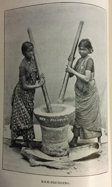In the house of Raman there are two females, Raman’s wife and his mother. When they have returned from the watering place, they attend to the work of feeding the men, and preparing for the lunch time meal. About 8 o’clock in the morning Raman and his brothers come in for their morning meal, which is generally some cold rice soaked in water the previous night, with butter milk and some pickle or chutney or some cold sauce. Having taken their morning meal, the superiors in the house leave in order to attend to the cultivation of the land or other works. As soon as the men have finished their meal female members help themselves to what is left of the dishes.