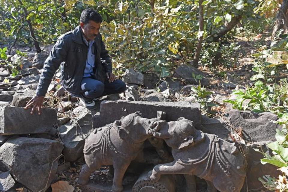 In most Indian temples, elephant icons have been used at the base, their strength metaphorically holding up the stones. Could that have been the case with the temples inside Raisen’s wall too? (Pratik Chorge/HT PHOTO)