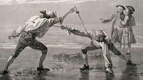 On one occasion Lord Alvanley fought a duel with Morgan O Connell on Wimbledon common. It appears that several shots were fired without effect, and the seconds then interfered and put a stop to any further hostilities. When his hackney coach drove up to his door Alvanley gave the coach man a sovereign. Jarvey was profuse in his thanks and said
