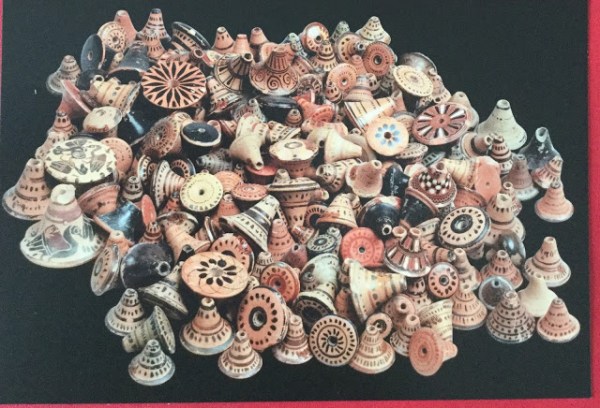 The Greek picture post card shows Clay spinning whorls, offered by young women to the sanctuary of Nymph, the protectress of marriage. They are dated around sixth century BCE. This ritual has been there in Greece at least 2500 years ago. Now they are in museum. But Hindu culture is older by thousands of years to Greek culture. And ours is a living culture and you can see such votive offerings even today in Sankarankoil and Bhagavathy temples in Kerala and hundreds of temples around the country.