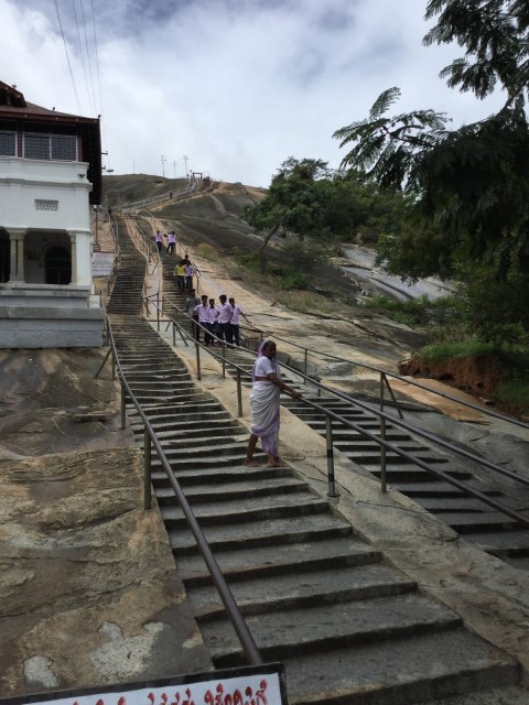 மேலே ஏறுவதற்கு 45 நிமிடம்! இறங்குவதற்கும் 45 நிமிடம்! மேலே சென்றவுடன் செலவழிக்கும் நேரம் நம் இஷ்டத்தைப் பொறுத்தது. ஆனால் செருப்பு போட்டுக் கொள்ள அனுமதி இல்லை. இது சமணர்களின் கோவில். அங்கே ஒரு அர்ச்சகர் தேங்காய் பழம் நைவேத்தியம் செய்கிறார். ஆகவே இரண்டு மணி நேரத்துக்கு பாத அணிகள் இல்லாமல் சென்று தரிசனத்தை முடித்தோம்.