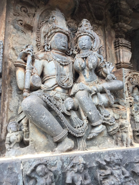 Hoysala sculptures are in famous Chennakesa va temple. They are 800 year old. 65 elephants on the frieze are carved beautifully and each one is different! Volouptuous beauties known as Mandakinis are also found in the brackets.