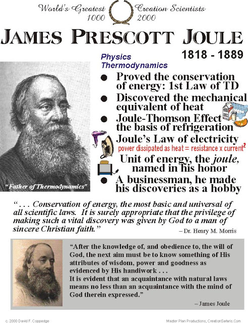 (He explained that the measure of the mechanical equivalent of heat created by the friction of the wind and agitation of the water gives experimental proof for the story of genesis as described in the Bible, to the effect that God’s powers have been conserved),.