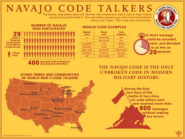 “இரண்டாம் உலக மகா யுத்தத்தில் அமெரிக்க பழங்குடியினரின் மொழி சங்கேத வார்த்தைகளுக்காகப் பயன்படுத்தப்பட்டது. இதை அறிந்த ஜெர்மனியும் ஜப்பானும் தங்கள் மாணவர்களை அமெரிக்க பழங்குடியினரின் மொழிகளான செரூகி, சாக்டா, கொமென்சே போன்ற மொழிகளைக் கற்குமாறு செய்தனர்” – உலக மகா யுத்த வரலாற்றுத் தகவல்.
