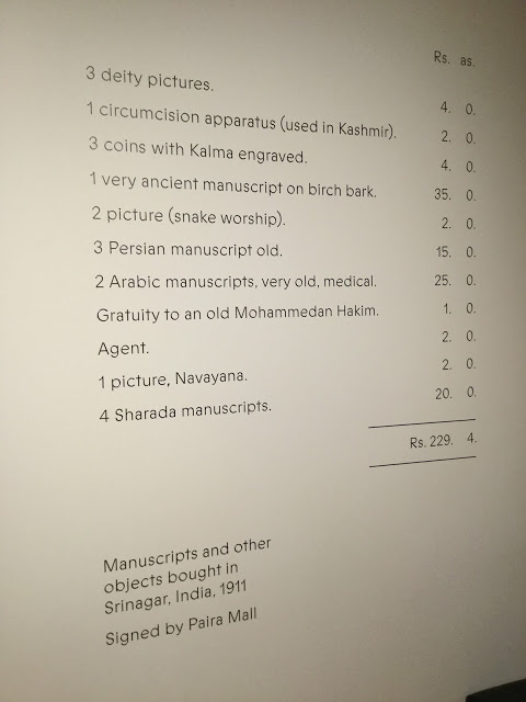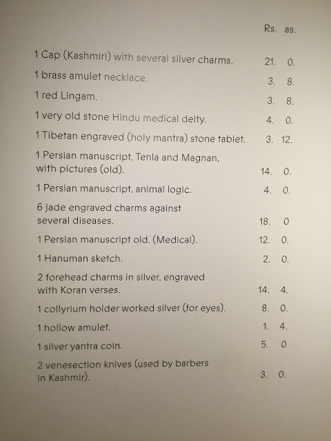 There is a list of things Mr Mall bought in Sri Nagar, Kashmir. It makes a very interesting list and shows what type of things were collected from different parts of the world by Henry Wellcome. Here is the list of things (displayed in Ayurvdic Man Exhibition in London)  he bought in 1911 for 229 rupees 4 annas:
