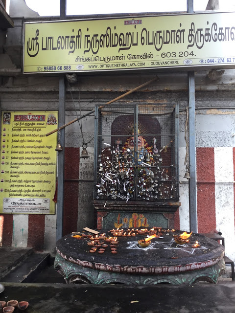 கோவிலுக்கு வெளியே வந்தால் ஒரு நரசிம்மர் சந்நிதி உள்ளது; அங்கே பூட்டுகளாகத் தொங்கு கின்றன. பாரீஸிலும் பல ஐரோப்பிய நகரங்களிலும் ஆற்றுப் பாலங்கள் தோறும் பூட்டப்பட்ட பூட்டுகளும் அதன் மேல் காதலன்–காதலி பெயர்களும் இருக்கும்; இதன் தாத்பர்யம் என்னவென்றால் அந்த ஜோடி பூட்டு போல இணைந்திருக்குமாம் ( பூட்டைப் பூட்டிவிட்டு வீடு திரும்புவதற்குள், ஜோடிப்புறாவில் ஒன்று பறந்துபோனாலும் அதிசயமில்லை!!!)