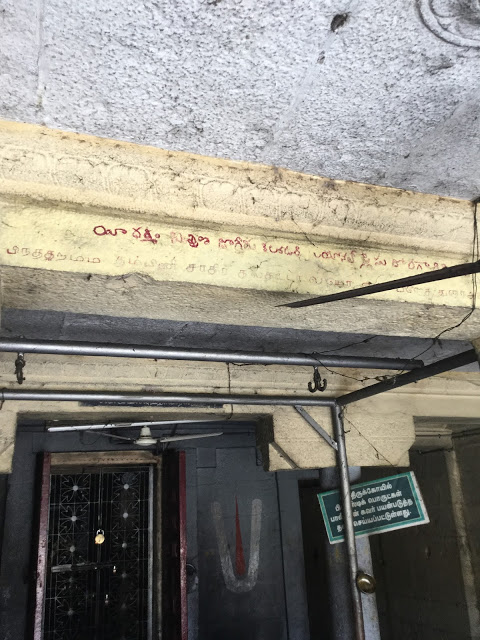 Priest Aramuthan explained to us the incident and asked us to visit the Manadap where there is an inscription regarding this. We saw it and I took some photographs. It is said that the collector reconstructed Sita’s shrine as well. She is called Janakavalli. When you read such anecdotes, you admire it; but when you see it it gives thrill and excitement. We become more devoted to Lord Rama.