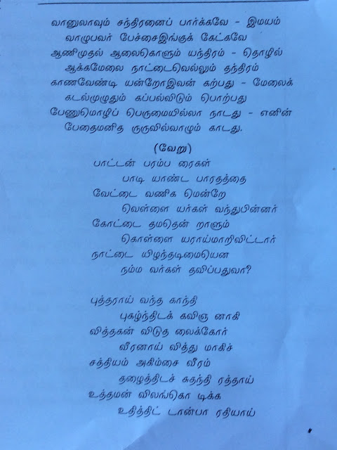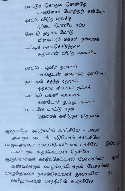 இந்த பாரதியாரின் வரலாற்று நூலில் பல அத்தியாயங்கள் உள்ளன. நூலை முழுவதுமாகத் தர இயலாத நிலையில் தேர்ந்தெடுத்த கவிதைகள் இங்கு அளிக்கப்படுகின்றன. இங்கு காசியில் கவிஞன் என்ற அத்தியாயத்தில் உள்ள 26 பாடல்களைப் படித்து மகிழலாம்.
