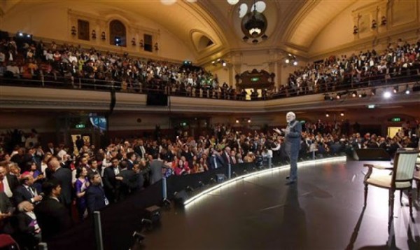 நரேந்திர மோடி லண்டனில் 18, ஏப்ரல், 2018 அன்று வெஸ்ட்மினிஸ்டர் சென்ட்ரல் ஹாலில் ‘பாரத் கி பாத் சப்கே சாத்’ என்ற நிகழ்ச்சியில் கலந்து கொண்டார்.