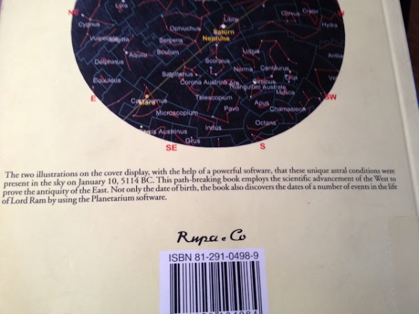 புத்தகத்தில் வான சாஸ்திர அடிப்படையில் வால்மீகி ராமாயனத்தை ஆராய்ந்து ராமனின் காலம் கி.மு5100– அதாவது இற்றைக்கு 7100 ஆண்டுகளுக்கு முந்தையவர் என்று கணித்துள்ளார். இதற்கு அவர் ஐந்து ஆண்டுகளுக்கு மேலும் உழைத்ததும் நவீன சாப்ட்வேர் computer software முதலியவற்றைப் பயன்படுத்தியதும் சுவையான செய்திகள் ஆகும்.