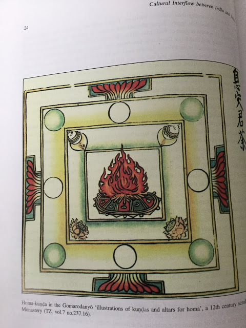 Goma (homa in Sanskrit) is lit in metallic vessel on a wooden altar. A ninth century scroll in the Toji monastery has different homa altars for the worship of planets (Nava Graha) and 28 constellations (naksatra- isti). This Goma- ro – dan -yo scroll has coloured illustrations of the planets, constellations and their altars. Goma is the esoteric fire, the calm and the fury of the ritual rhythms in the cosmic counterpoint of invocations with Sanskrit mantras.