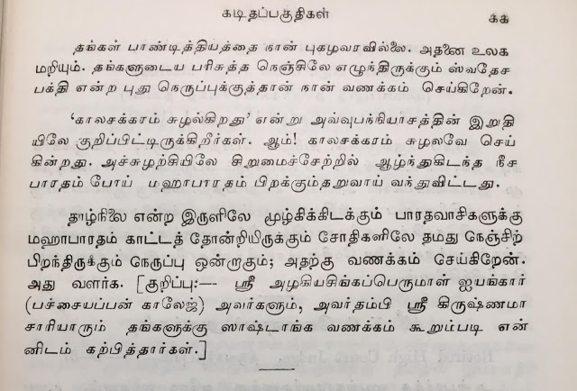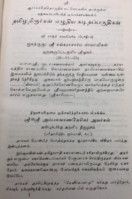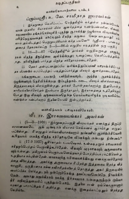 பாரதியார், வ,உ. சிதம்பரம் பிள்ளை, உ.வே.சா. ஆகியோர் பல சமயங்களில் மு. இராகவையங்காரைப் பாராட்டி எழுதிய கடிதங்கள் இவை.