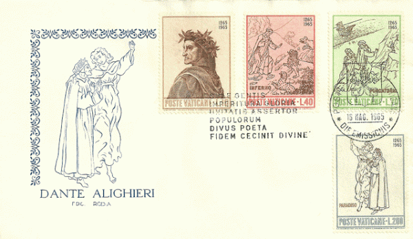 டிவைன் காமெடியில் இவர் நரகம், இடைப்பட்ட பரிகார உலகம், சொர்கம் என்ற மூன்று இடங்களுக்குப் பயணம் செய்து இறுதியில் சொர்க்கத்தில் மானசீகக் காதலி பீட்ரைஸுடன் இணைகிறார்.