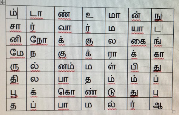 | ரு | ல் | னம் | ம | ள் | பி | து |