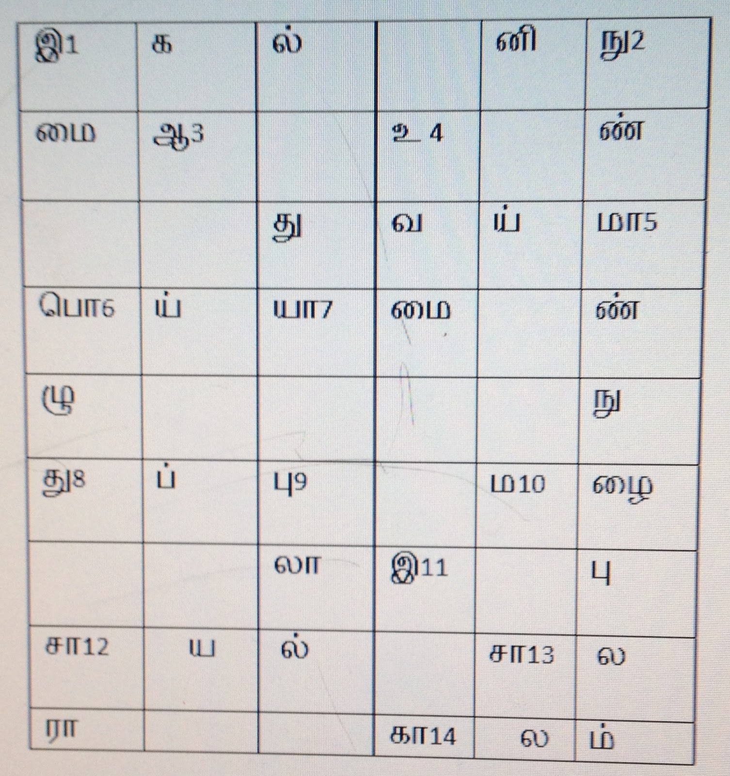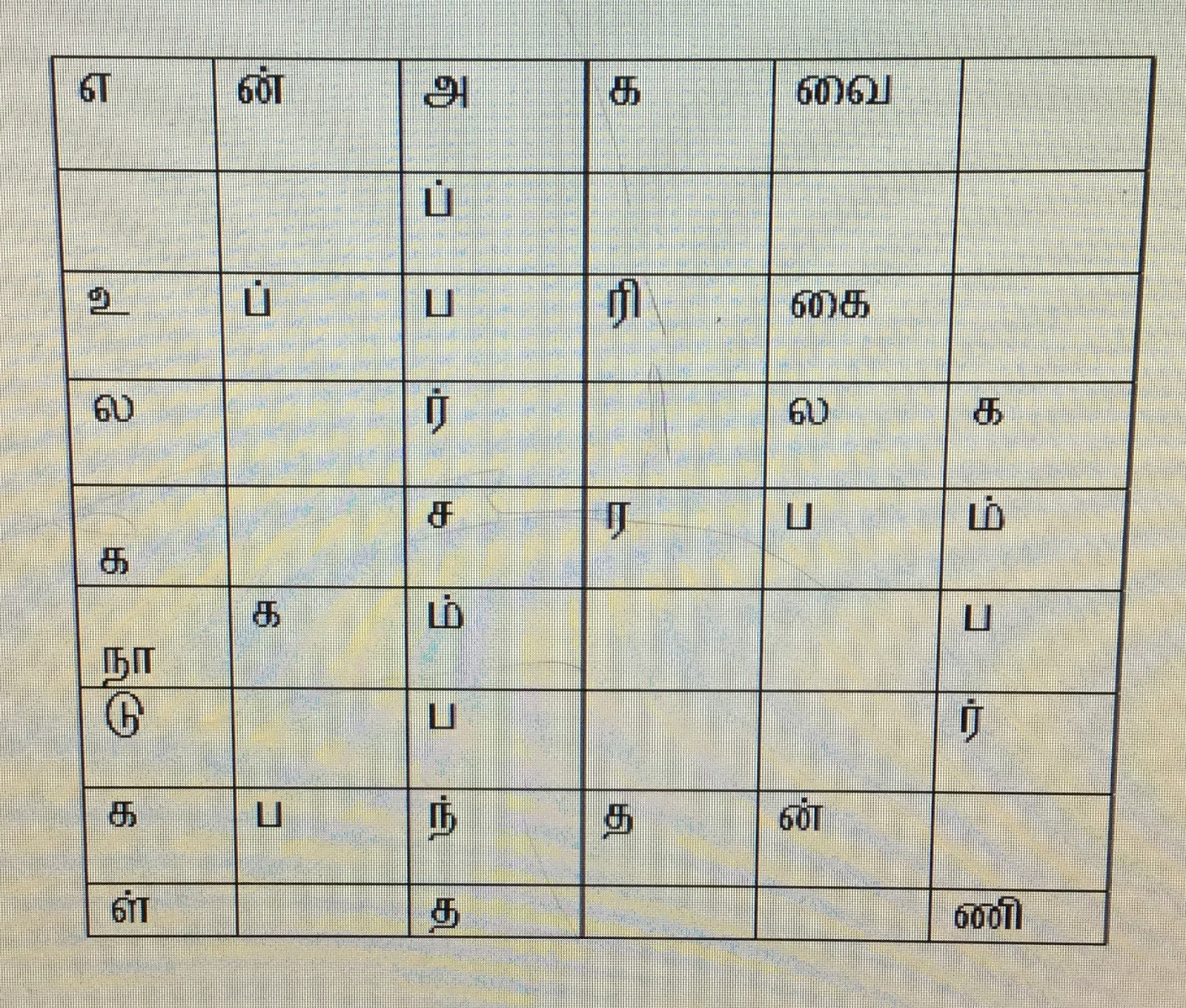 குறைந்தது 13 தமிழ் சொற்களைக் கண்டுபிடியுங்கள்