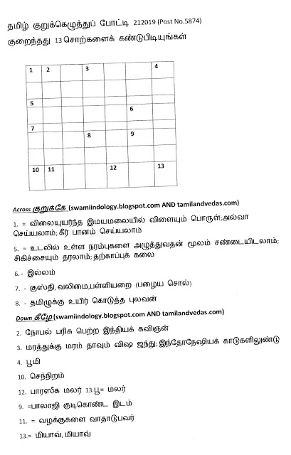 தமிழ் குறுக்கெழுத்துப் போட்டி 212019 (Post No.5874)