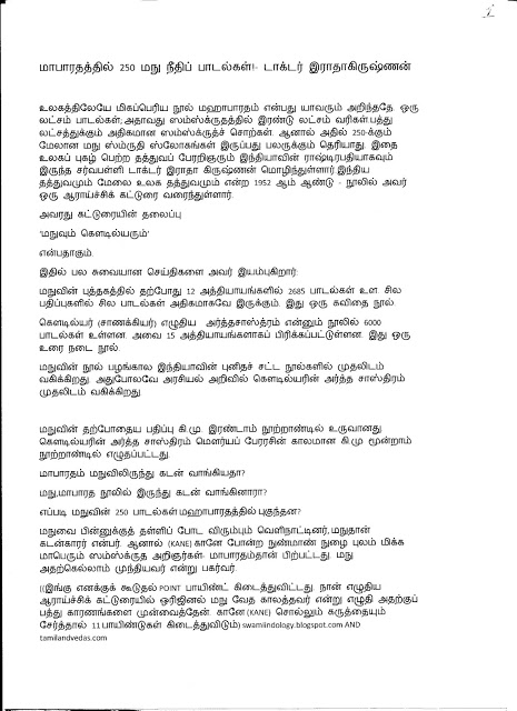 மாபாரதத்தில் 250 மநு நீதிப் பாடல்கள்!- டாக்டர் இராதாகிருஷ்ணன் (Post No.5880)