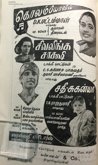 FOLLOWING ARE OLD TAMIL FILMS ADVERTISED IN SAKTI MAGAZINE BETWEEN 1940 AND 1943