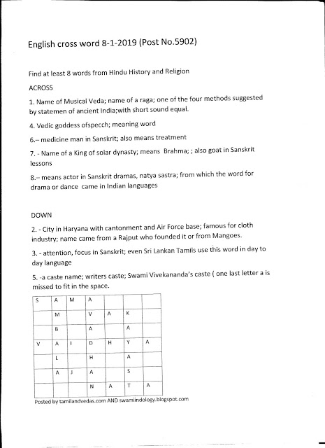 5. -a caste name; writers caste; Swami Vivekananda’s caste ( one last letter a is missed to fit in the space.