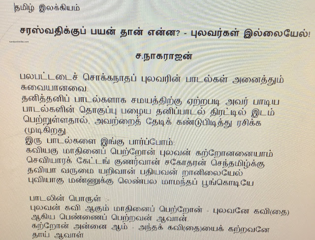 சரஸ்வதிக்குப் பயன் தான் என்ன? – புலவர்கள் இல்லையேல்! (POST No.6152)