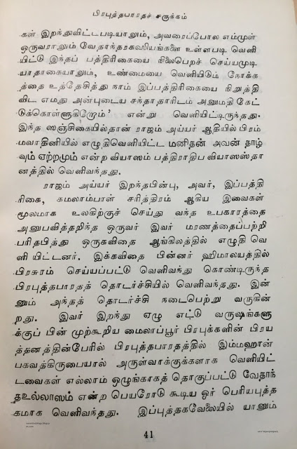 இரண்டு ஆண்டுகளுக்கு பத்திரிக்கை மிகவும் பிரமாதமாக ராஜம் ஐயரின் கட்டுரைகளுடன் வெளி வந்தது. அவர் அகால மரணம் அடைந்தவுடன் ‘ராஜம் ஐயர் இறந்து விட்டதால் பத்திரிகையை நிறுத்துகிறோம்‘ என்று அறிவிப்பு வெளியிட்டு நிறுத்திவிட்டனர். பின்னர் இப்பத்திரிக்கை வடக்கிலிருந்து வெளியானது.
