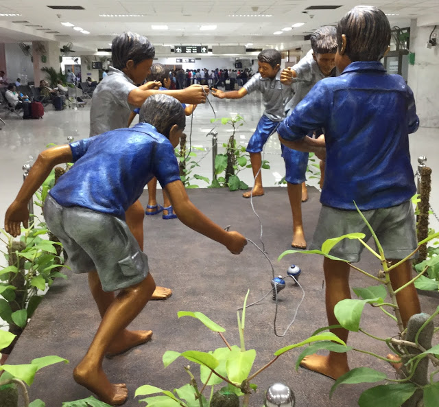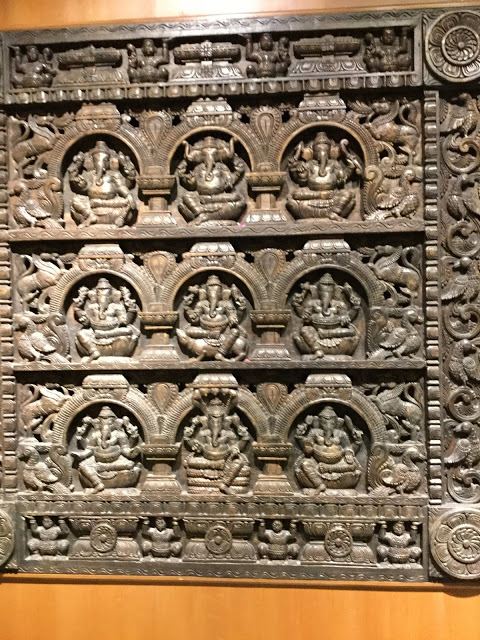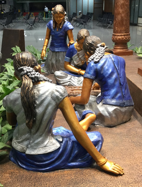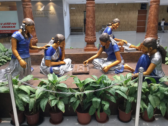 Just before boarding the BA flight to London I was clicking pictures near Gate 14 in Chennai Airport on 3rd April 2019. See the beautiful statues, pictures and wood works.